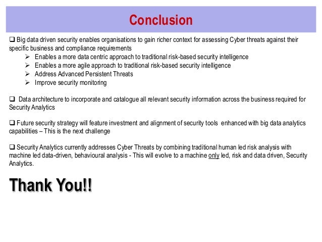 PREDICT SECURITY THREAT HOW HAS BIG DATA ANALYTICS HELPED? Identify where security threats may occur Feeds Log Files Firewall The security landscape is always changing. So changes in behavior can indicate where the next attack may occur. ... Retrieve Content